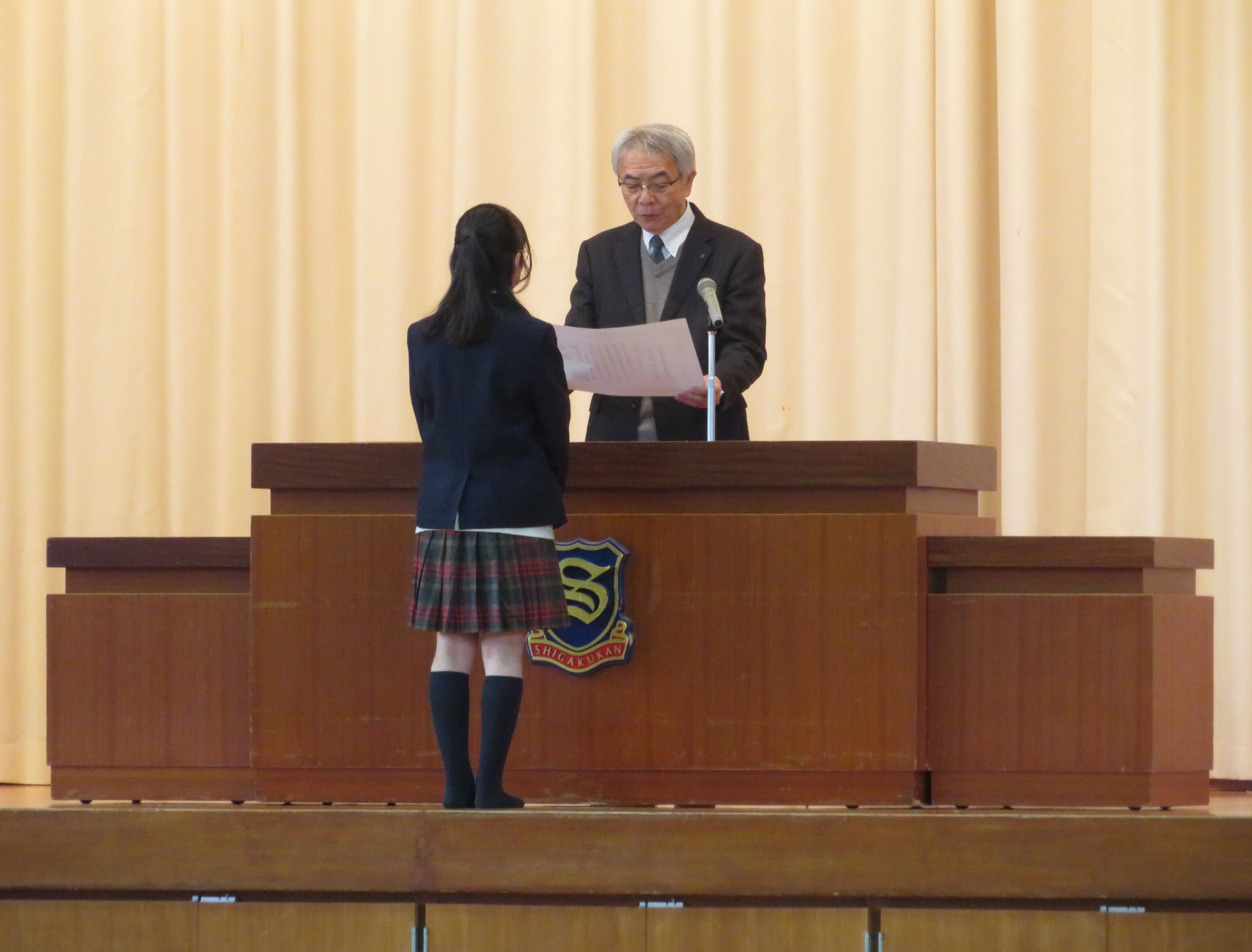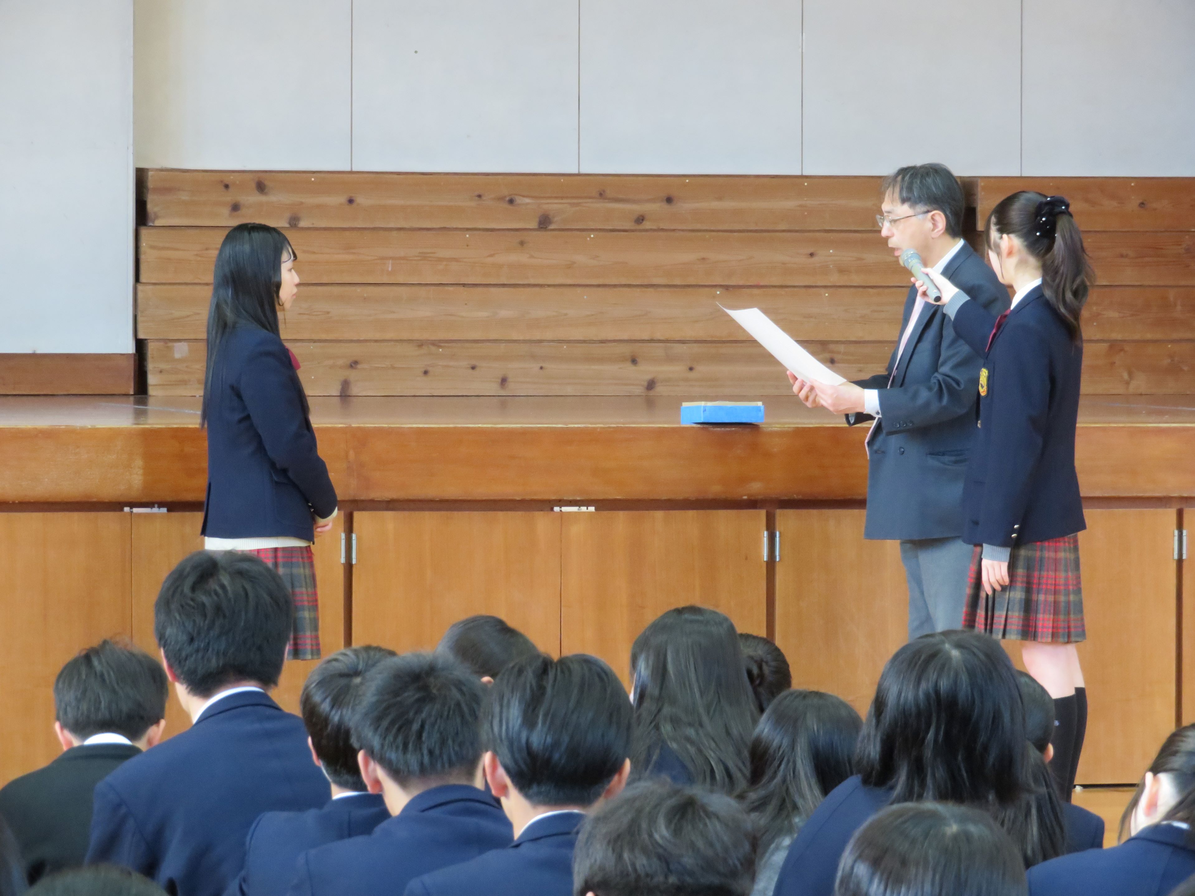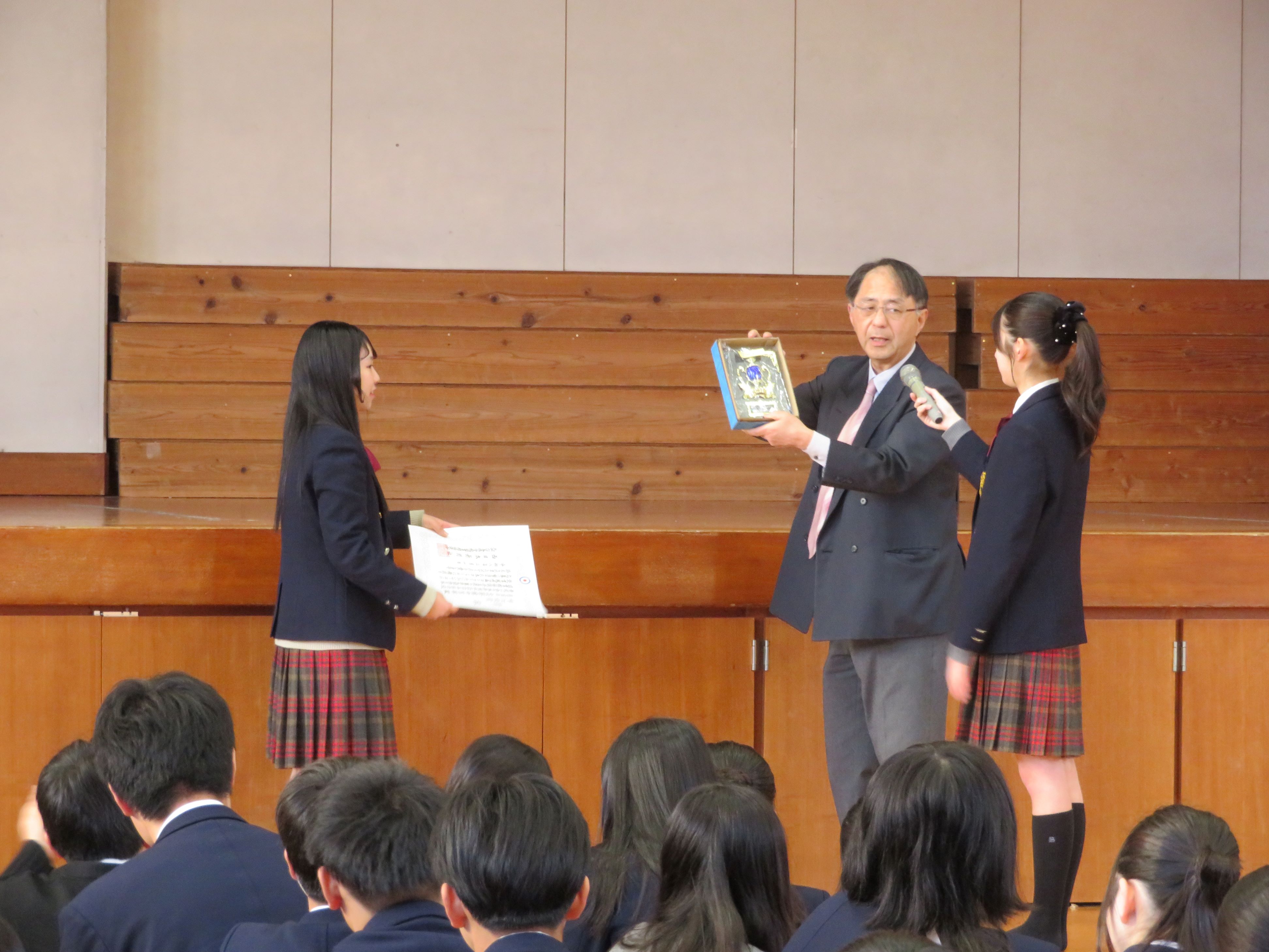 選ばれ、全校朝礼で表彰を行いました。