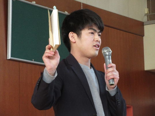 中等部1年生の時、ビブリオバトルでチャンプ本に選ばれたことや教室読書会で紹介した本、
