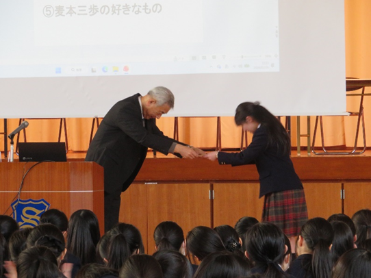 中等部1年生~高等部2年生の各学年代表者5名が、おすすめの本を紹介し、