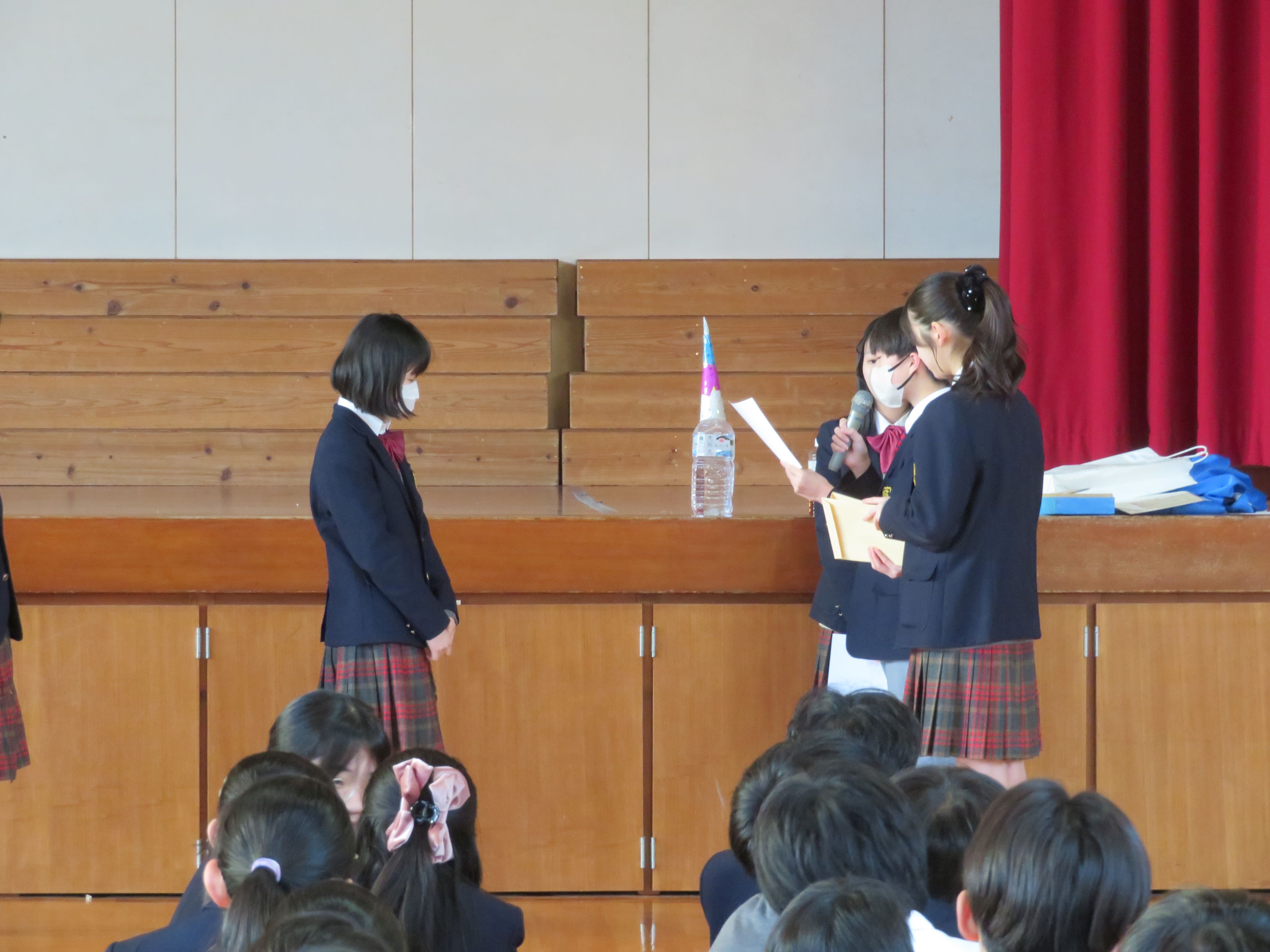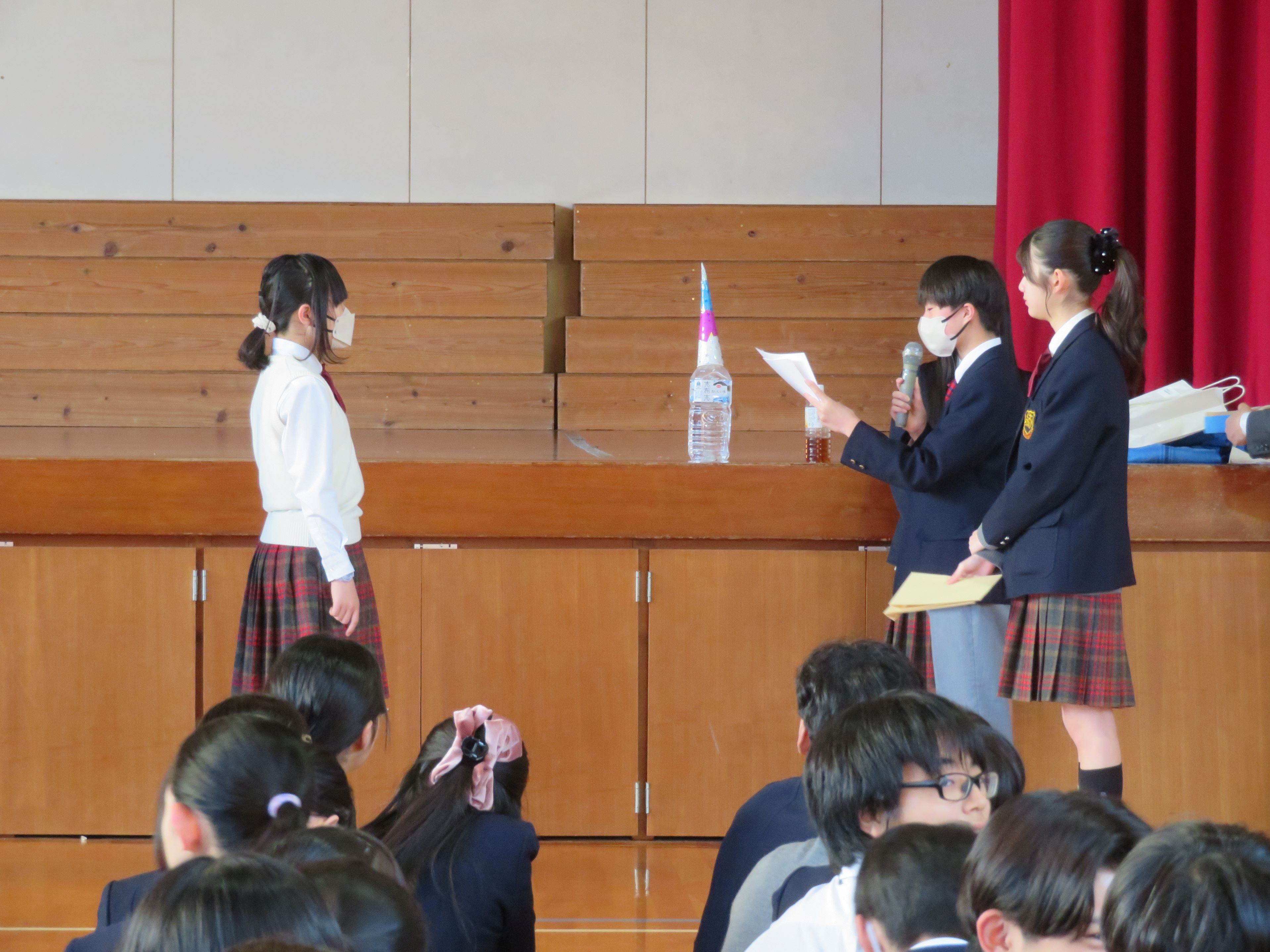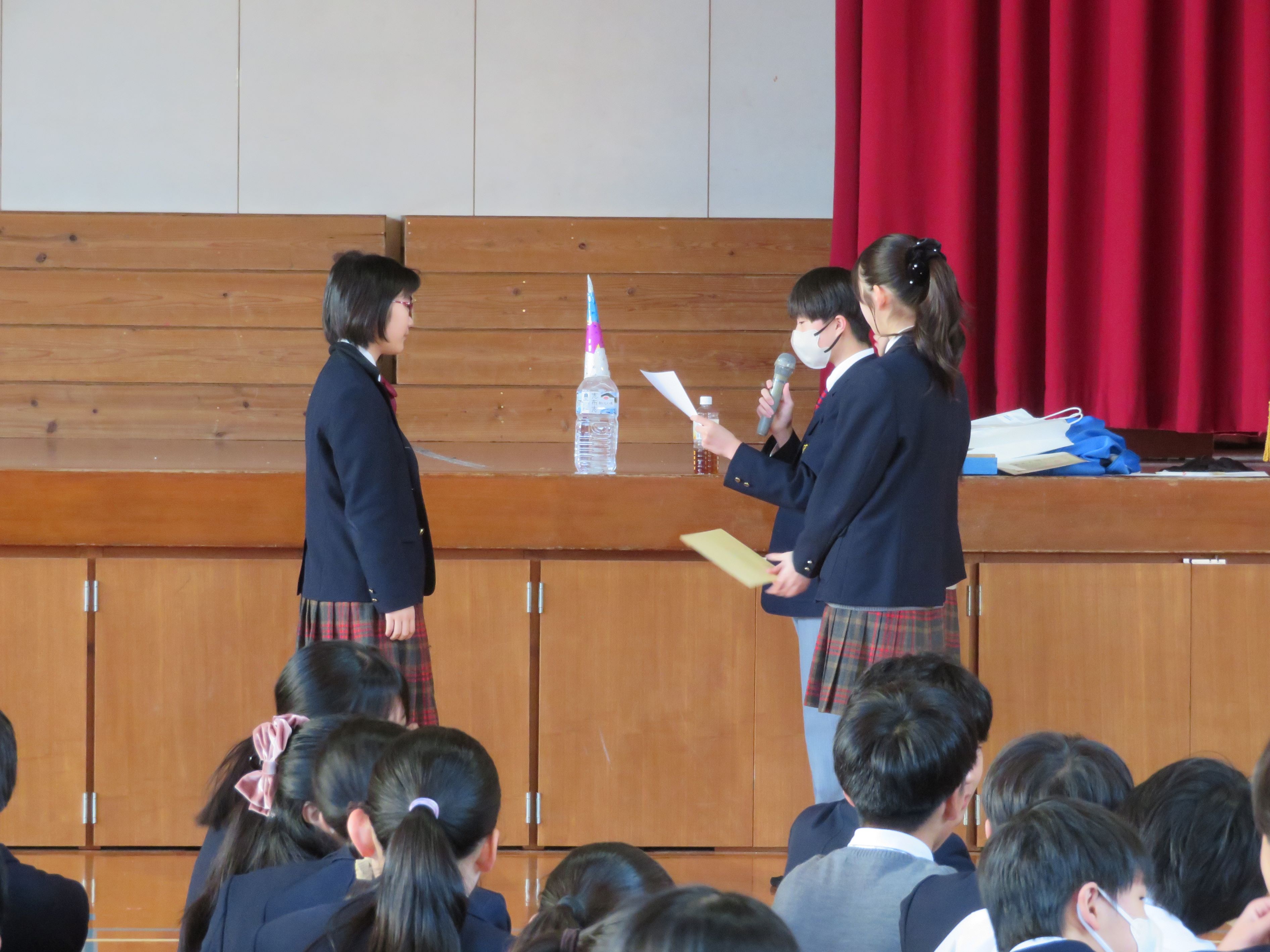 図書部副部長から賞状と賞品が授与されました。